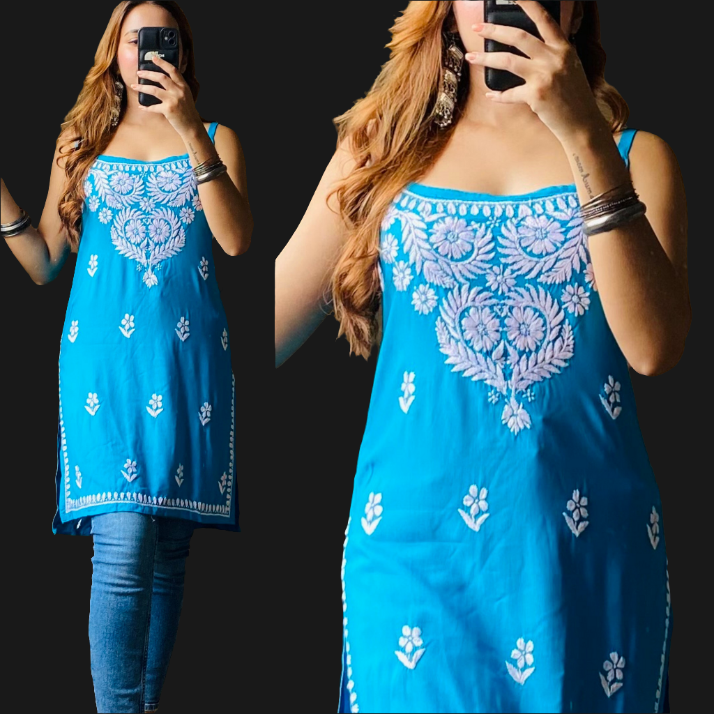 Sleeveless kurti|| Hand Embroidery |Noodle straps