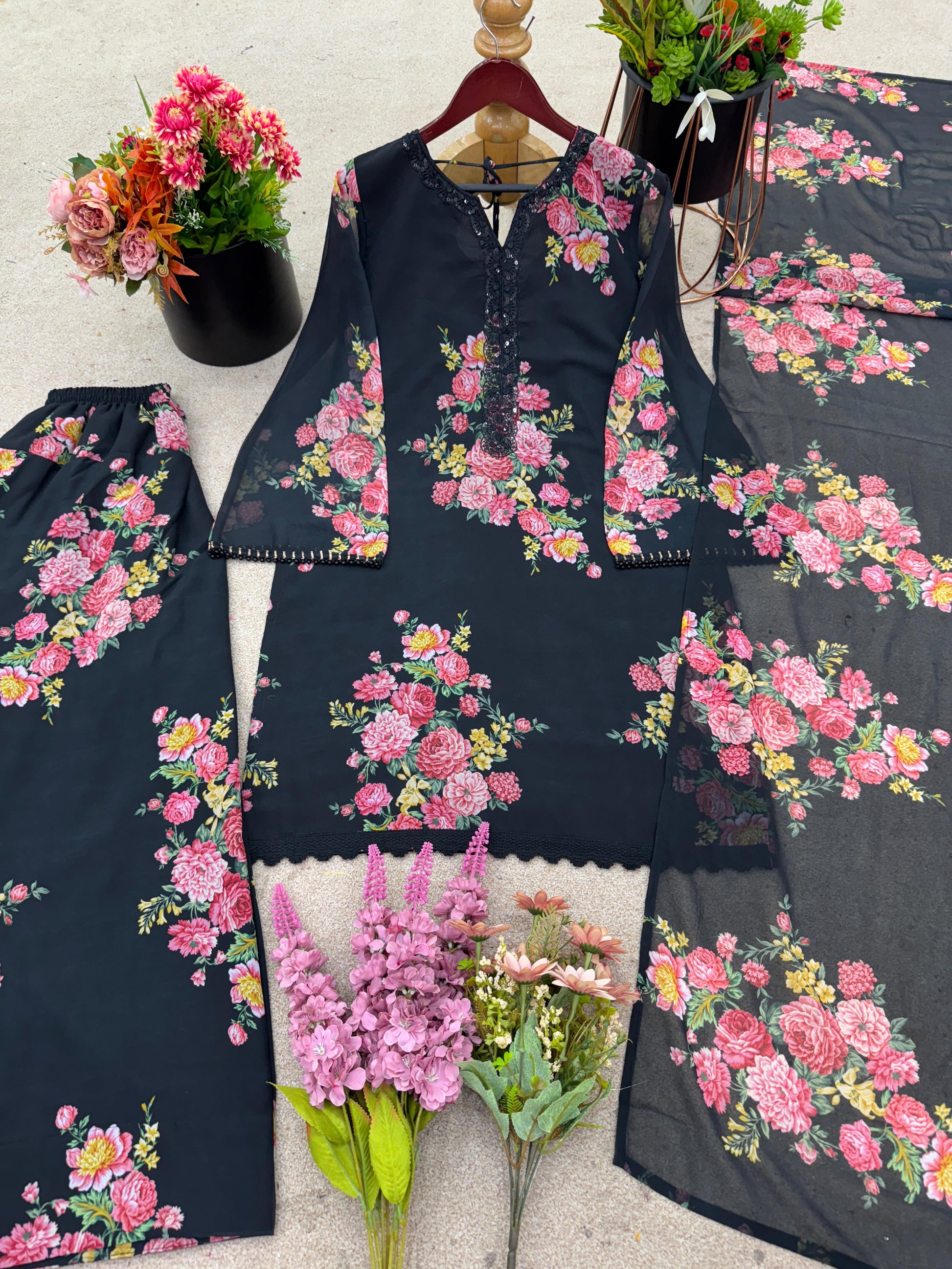 *Top Fabric* :*Pure Faux Georgette With Digital Print With Full Sleeve