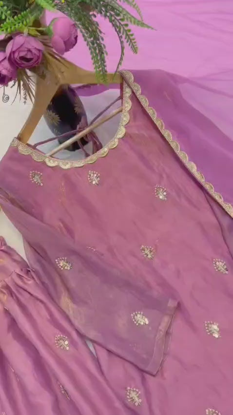 *Farshi salwar Fabric*: Heavy Fandy Crushi Silk Embroidery Sequence Work.