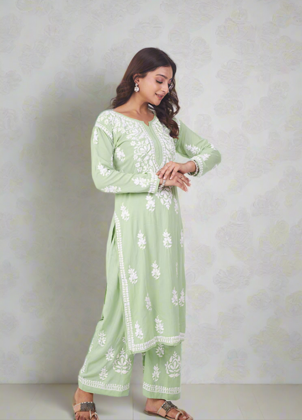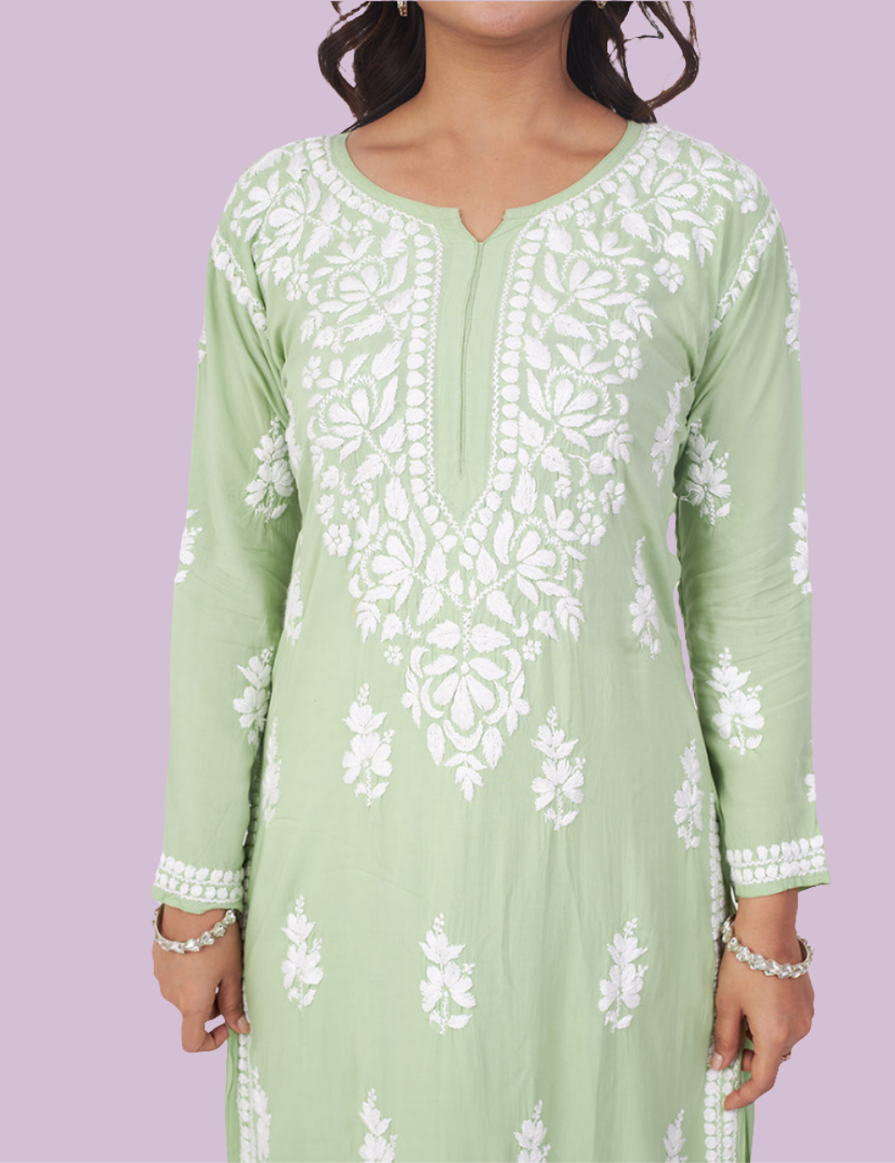 Elegant Chikankari Modal Kurti with Pant Set.