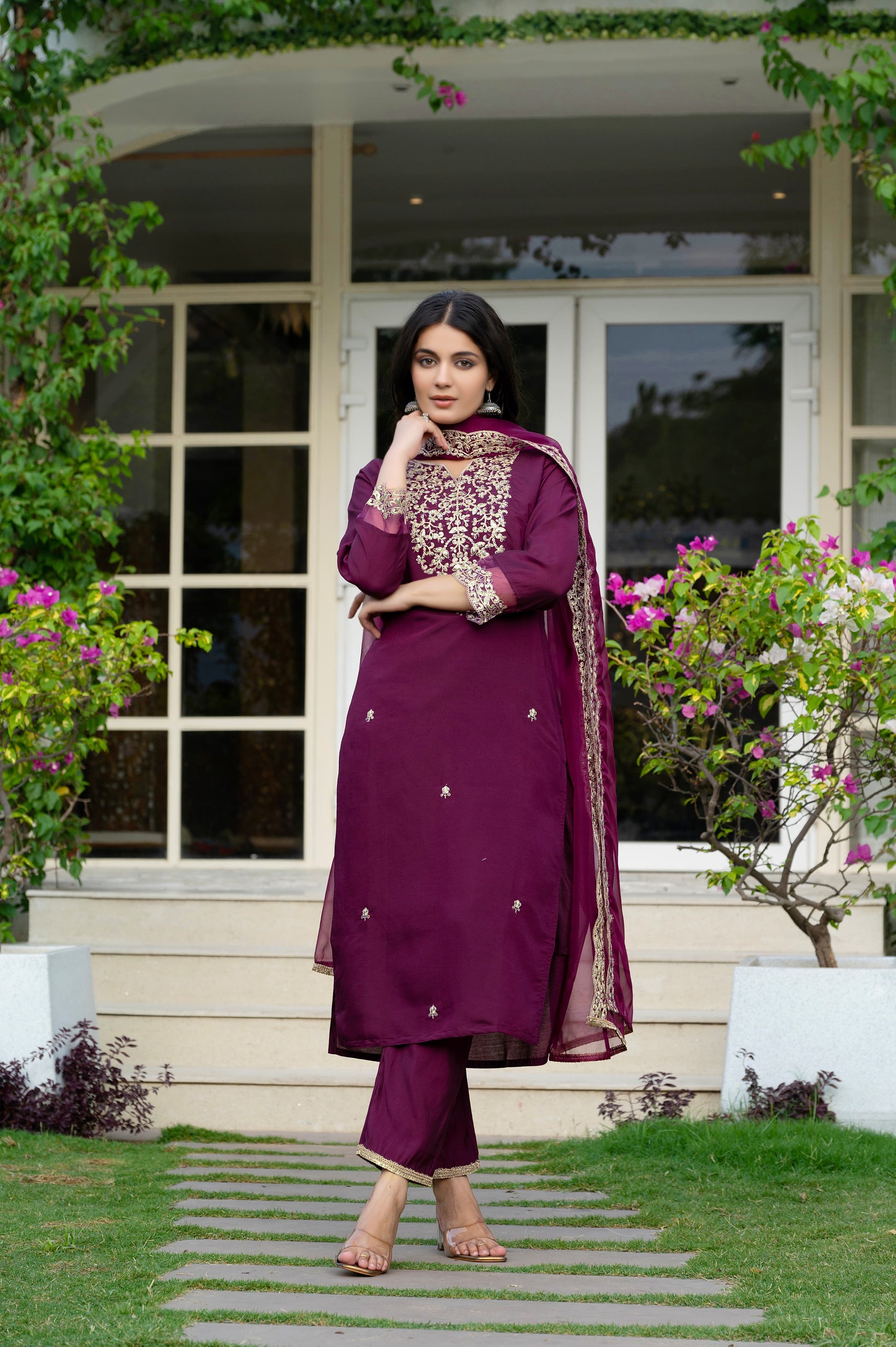*Heavy Embroidery Detailing Kurta Pant and Dupatta Set with Golden Coding lace on Bottom and Dupatta ❤️*